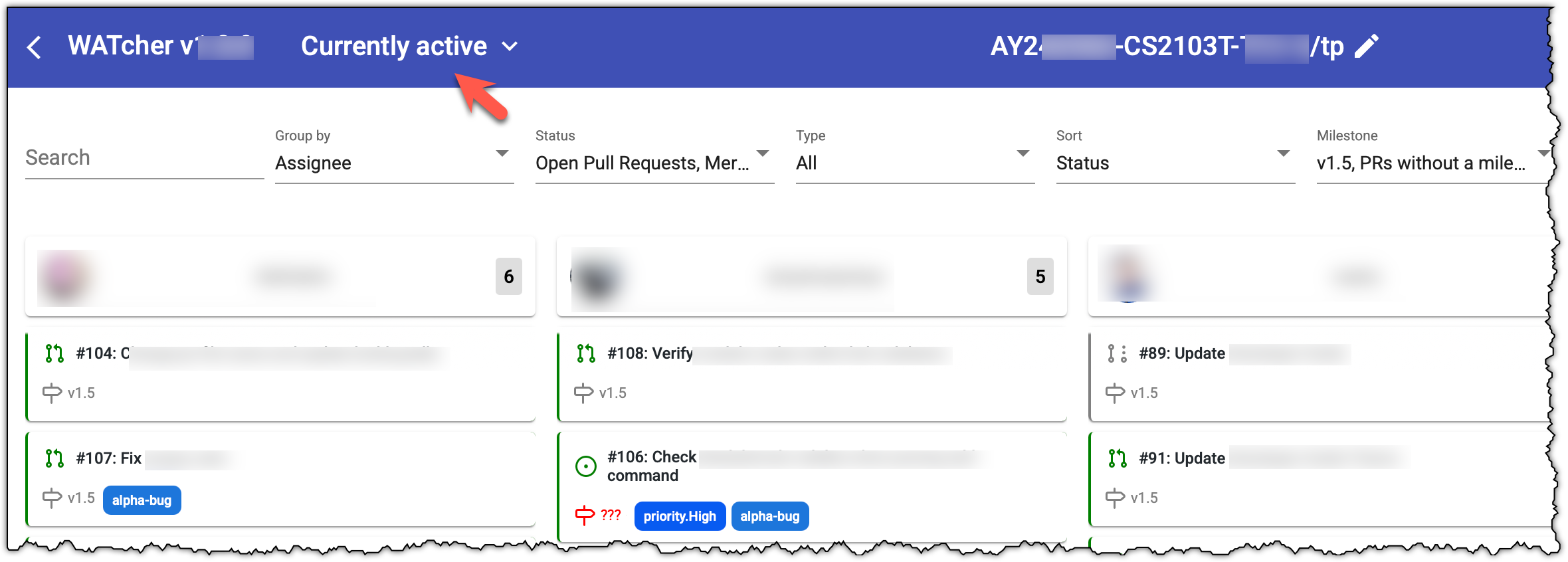 - Click on your name to load the code attributed to you (based on Git blame/log data) onto the code panel on the right.