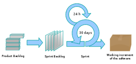 A Scrum project is divided into iterations called Sprints. A sprint is the basic unit of development in Scrum. Sprints tend to last between one week and one month, and are a timeboxed (i.e., restricted to a specific duration) effort of a constant length.