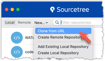 → Choose as shown below → Provide the URL of the repo and the destination directory in the next dialog.