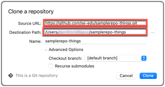 1 Similar to the previous hands-on practical, clone the repo se-edu/samplerepo-finances (to a new location).