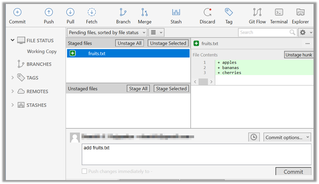 branch, the staging area, and the working directory remain unchanged after the fetch.