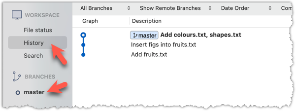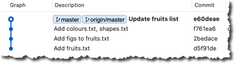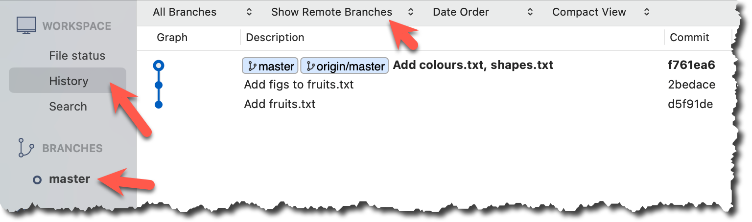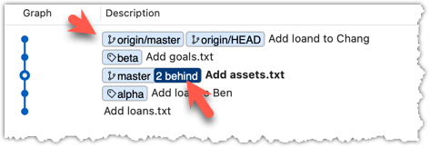 5 Verify the fetch worked i.e., the local repo is now aware of the two missing commits. Also observe how the local branch ref of the master