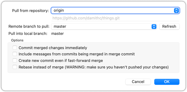 Similar to before, but remember to choose the intended remote to pull from.