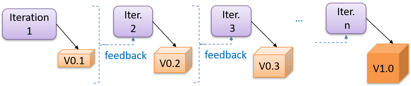 Each iteration produces a new version of the product, building upon the version produced in the previous iteration. Feedback from each iteration is factored into the subsequent iterations. For example, if an implementation task took longer than expected, the effort estimate for a similar tasks in future iterations can be adjusted accordingly. Similarly, if a feature introduced in the current iteration was not well-received by target users, it can be removed or tweaked in the next iteration.