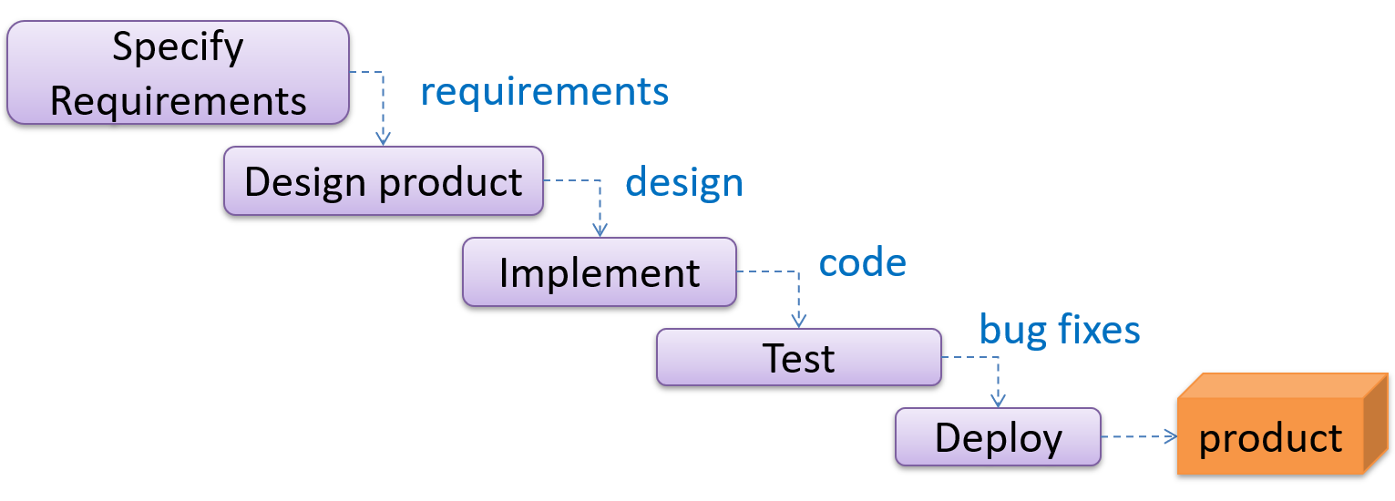 When one stage of the process is completed, it produces some artifacts to be used in the next stage. For example, the requirements stage produces a comprehensive list of requirements, to be used in the design phase.