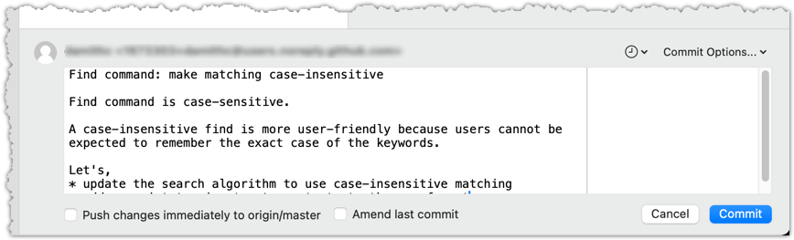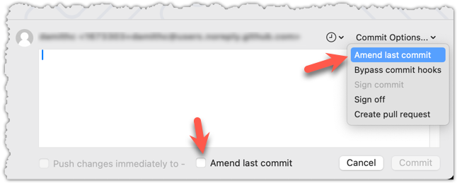 button on the top menu. In the region that you use to enter the commit message, use one of the two methods given below to go into the 'Amend last commit' mode.