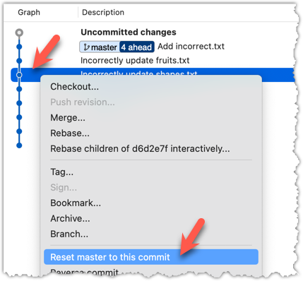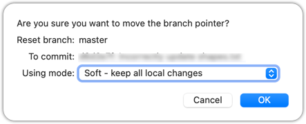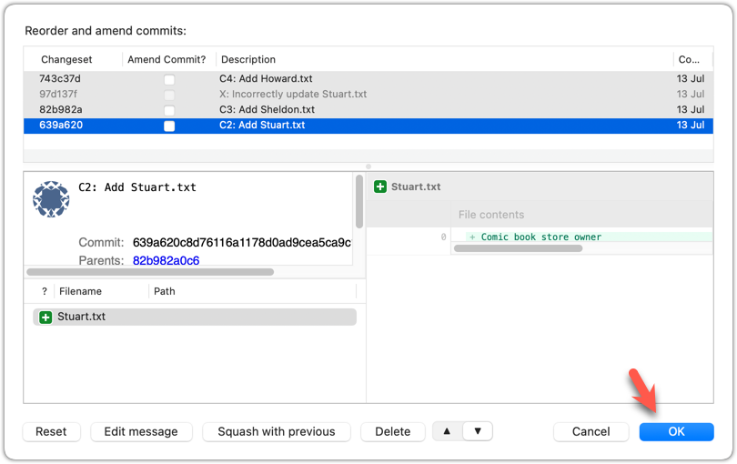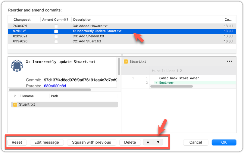 2 To indicate what action you want to perform on each commit, select the commit in the list and click on the button for the action you want to do on it: