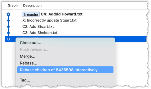 ) and choose Rebase children of <SHA> interactively...