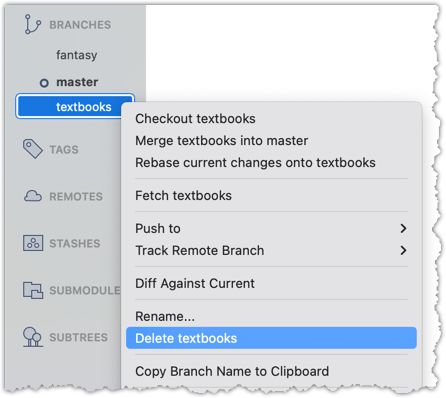 Often, you'll need to delete a branch in a remote repo after it has served its purpose.