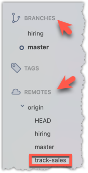 1 Verify that the remote-tracking branch origin/track-sales