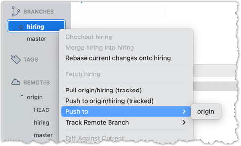 git push origin -u hiring