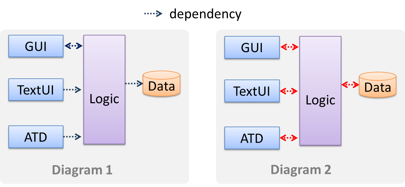 Consider the two architecture diagrams of the same software given below. Because Diagram 2